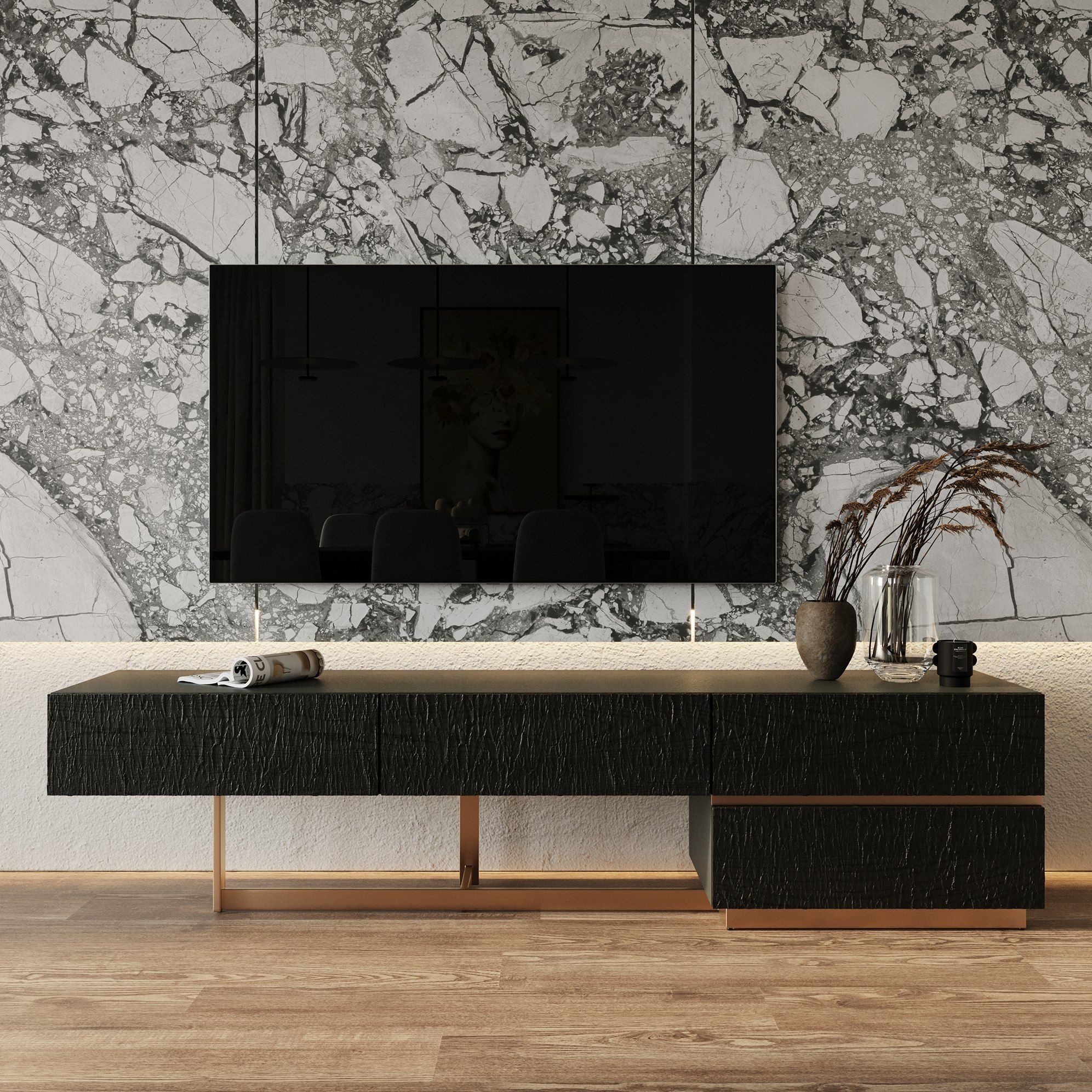 Elevate your living space with the Lunara StoneBase TV Console, a seamless fusion of minimalist design and organic texture. This