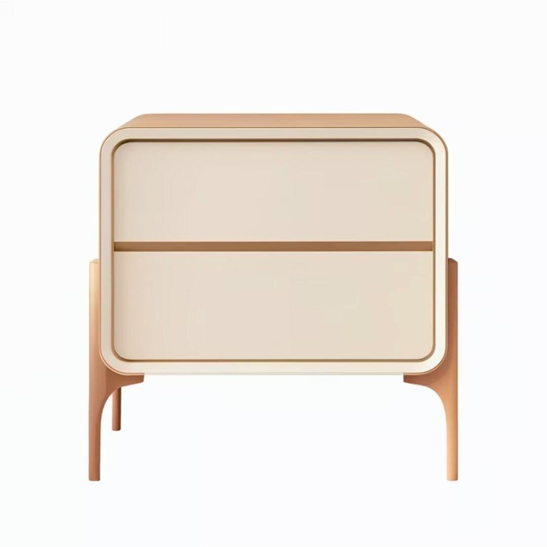 Add a touch of elegance to your bedroom or living space with this modern dual-drawer bedside table. Featuring smooth rounded edges, a matte cream finish, and warm wooden legs, it blends style with practicality. The minimalist design offers convenient storage without sacrificing aesthetics. Its soft tones make it easy to pair with both contemporary and classic interiors.