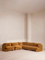 Introducing the Modora VelvetCore Modular Sectional Sofa, where sculptural softness meets bold retro-modern charm. Draped in luxurious mustard gold velvet, this modular sectional transforms any room with its warm tone and deeply inviting silhouette.