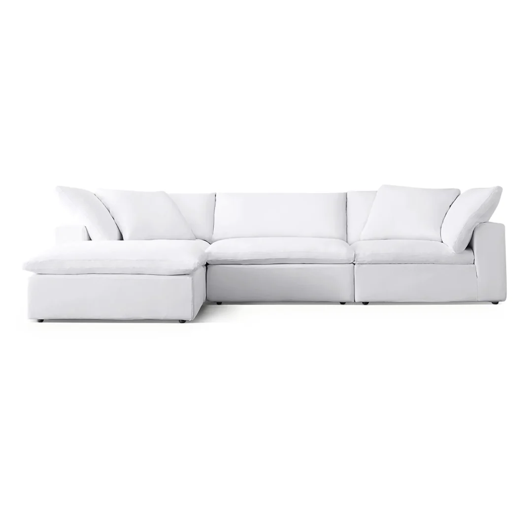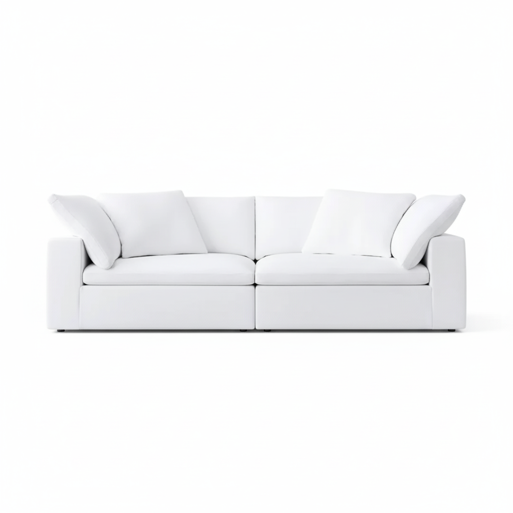 Experience unparalleled comfort with the Serenity Cloud Sofa, designed to be your ultimate relaxation haven. Inspired by the softest of clouds, this modular seating system features deep, inviting cushions that you’ll sink right into. Upholstered in a luxurious yet durable bright white fabric, it brings an airy, spacious feel to any living area.