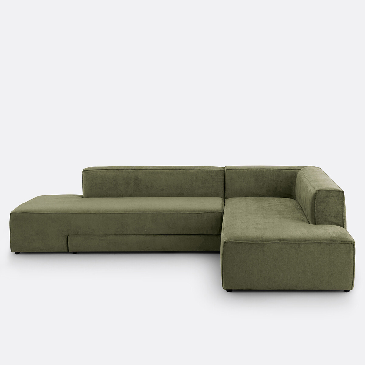 The upholstery is a premium, textured fabric in a sophisticated olive green, offering a natural, earthy tone that serves as a bold yet neutral centerpiece. The internal construction features high-resiliency foam and a sturdy frame to ensure that the transition from seating to sleeping remains comfortable for years to come. With its clean lines and multifunctional design, the QF Sofa is more than just furniture—it is a smart investment in comfort and style.